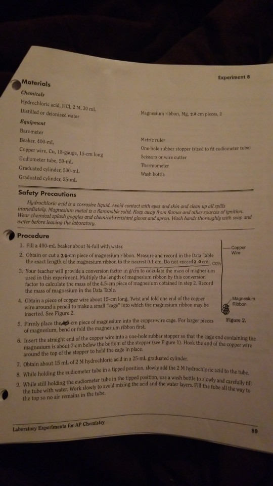 Solved Experiment 8 ーeudiometer Gas Measuring Tube Chegg Com